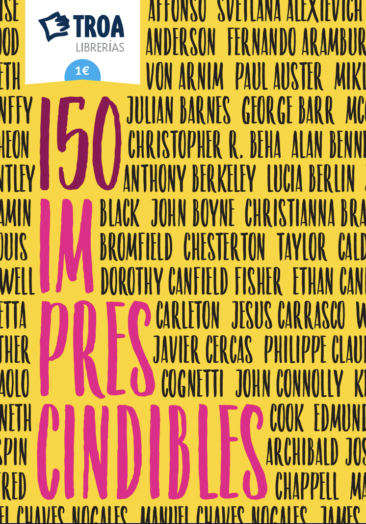 Con la colaboración de expertos en la materia, hemos publicado en Troa Librerías tres folletos con una lista de 150 libros que consideramos Imprescindibles sobre tres materias: Clásicos contemporáneos, Libros Juveniles y Literatura Infantil. No se trata de una guía académica sino de una serie de títulos que, con la experiencia de Troa Librerías, hemos comprobado su buena aceptación entre nuestros lectores. No quiere ser tampoco una guía de libros indiscutibles sino una selección muy personal, avalada por el trabajo de nuestros libreros (somos conscientes de que, como todas las selecciones, faltan muchos libros, que pueden echarse de menos). Te invitamos a visitar nuestras librerías y solicitar un ejemplar de estos tres folletos que pueden servir para darte ideas para nuevas lecturas y para enriquecer los fondos de tu biblioteca.